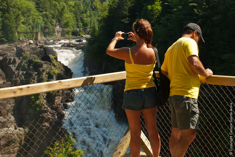 Qui se douterait qu'à 30 minutes de Québec, sur la route qui mène aux baleines de Tadoussac, il existe un incroyable Canyon digne des grandioses Canyons de l'Ouest américain, avec torrent tumultueux, ponts suspendus et marmites géantes dans laquelle des ...