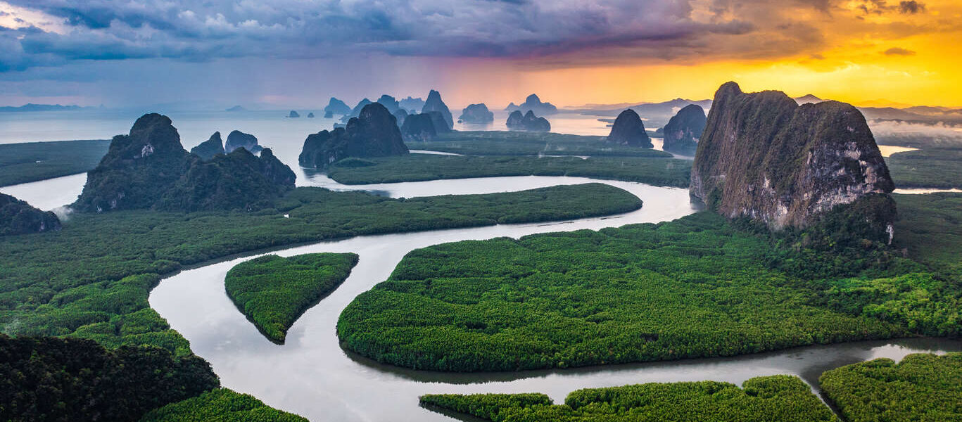 Accessible en bateau depuis Phuket, elle se découvre au fil d’une croisière ponctuée de haltes spectaculaires, dont l’emblématique îlot de James Bond, rendu célèbre par le film L’Homme au pistolet d’or. Ici, le temps ralentit entre silence des eaux, reflets dorés et émerveillement face à la nature. La baie de Phang Nga est une invitation à la contemplation, à la sérénité et à la beauté absolue.