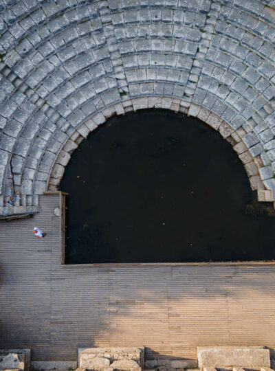 Le site se parcourt comme un musée à ciel ouvert, où chaque pierre raconte un pan d’histoire. Théâtre antique, thermes romains, baptistère aux mosaïques finement conservées, basilique byzantine, fortifications vénitiennes… Butrint fascine par la diversité et la qualité de ses vestiges, enveloppés par une nature luxuriante qui ajoute au mystère des lieux. Le calme ambiant, ponctué par le chant des oiseaux et le clapotis de l’eau, renforce cette sensation d’intemporalité.