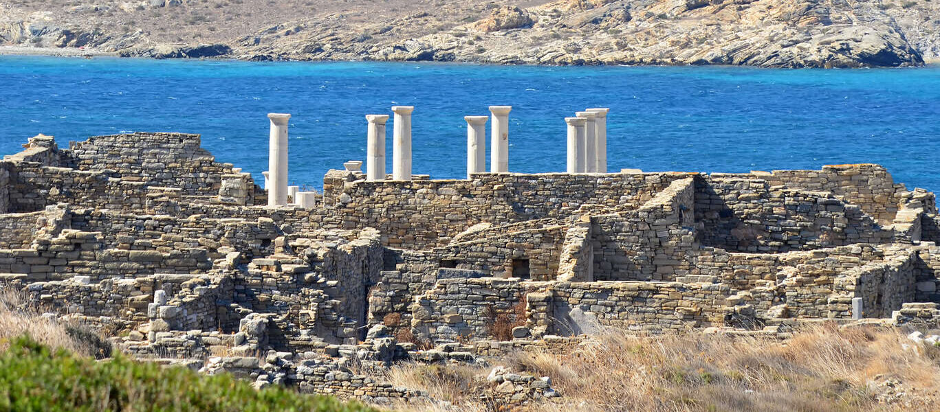 Petite île à quelques encablures de Mykonos, Délos et son site archéologique classé au patrimoine Mondial de l’UNESCO constituent une étape incontournable des Cyclades ! Accompagné de votre guide, commencez votre visite par le sanctuaire d’Apollon via la Voie des Processions. Vous découvrez également la fameuse « Terrasse des lions » où se dressent encore 5 des 16 lions en marbre de Paros. Visitez ensuite le musée archéologique de l’île et les vestiges du quartier le plus luxueux de la cité antique qui abrite également l’ancien théâtre. Avant de quitter l’île, il vous faut absolument passer par le temple d’Isis, déesse patronne des marins ; puis vous hisser au sommet du Kynthos -ou Mont Cynthe- qui, après 20 minutes d’ascension par un escalier antique, vous offrira une vue imprenable sur le site de Delos, mais aussi sur les îles environnantes !