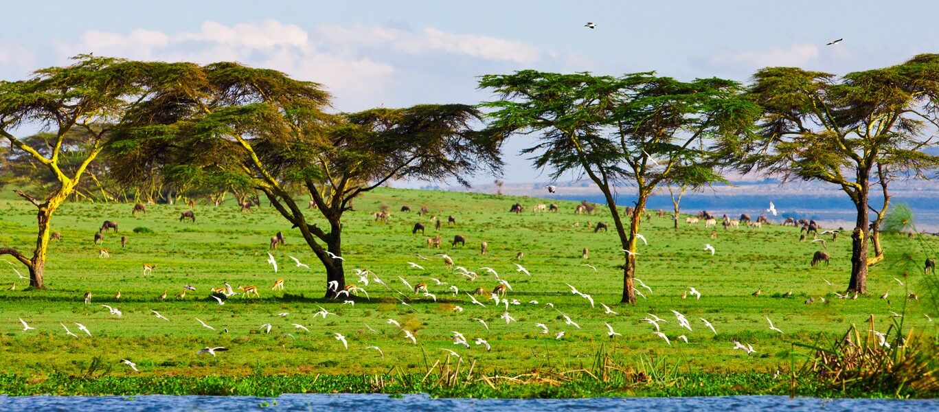 Situé au Kenya, dans la Vallée du Grand Rift, au nord de la capitale du pays Nairobi, le lac Naivasha offre ses eaux poissonneuses à une multitude d’oiseaux. Avec une altitude de 1884 mètres, c’est le lac le plus élevé de la Vallée du Rift. Ses eaux douces et bleues sont bordées de berges couvertes de papyrus et d’acacias. Dans les plaines verdoyantes qui entourent le lac, des zèbres, des buffles, des impalas, des girafes et des singes viennent également se nourrir. Le lac Naivasha est un véritable sanctuaire pour les oiseaux puisqu’il en héberge plus de 300 espèces, parmi lesquelles l’ibis, le héron, le tisserin, le pygargue vocifer, le balbuzard pêcheur, le jacana à poitrine dorée ou encore le râle noir. Une promenade safari en bateau sur le lac Naivasha permet d’observer de plus près les oiseaux et de naviguer au milieu des hippopotames, qui vivent dans les eaux bleutées.