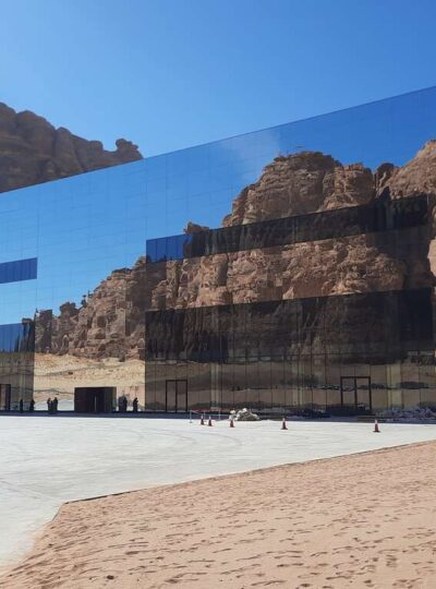 Le voyage au Maraya Concert Hall vous plonge dans un univers unique, entre prouesse architecturale et cadre naturel spectaculaire. Située au cœur de la vallée d’AlUla, cette salle de concert hors du commun est entièrement recouverte de miroirs, reflétant les falaises de grès environnantes et créant un jeu saisissant entre architecture et nature. Véritable symbole de modernité, elle accueille concerts, événements culturels et expositions internationales dans un décor d’exception.