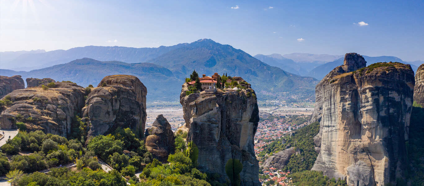 Dans la plaine de Thessalie, des rochers auraient été envoyés par le ciel…C’est du moins ce que suggère l’étymologie du mot Météores. Au sommet de ces pitons rocheux, sculptés par l’érosion, se dressent avec curiosité des monastères datant des XIVe et XVe siècle. Seulement six de ces monastères chrétiens orthodoxes restent aujourd’hui en activité, mais de nombreux autres sont encore visibles en parcourant les lieux. Au cours de votre visite vous pourrez entreprendre quelques ascensions pour atteindre les monastères ouverts au public, présentant la vie monacale du site et offrant un point de vue magnifique sur les Météores. Découvrez ce site classé au patrimoine mondial de l’UNESCO avec Cercle des Voyages au cours de votre voyage sur-mesure en Grèce.