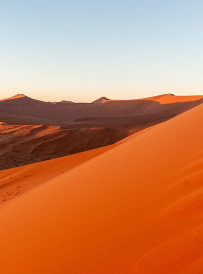 Le Sossusvlei correspond à la partie la plus facile à atteindre dans le désert du Namib. Après avoir emprunté une route au sein du parc national du Namib-Naukluft, vous arriverez sur ces magnifiques dunes orange se découpant de manière improbable sur le ciel bleu. La dune « Big Daddy » culmine à 800 mètres d’altitude et vous ne pourrez être qu’impressionné(e) par son incroyable teinte. Pour les plus courageux, il est possible de prévoir une excursion afin de gravir l’une des dunes du Namib.