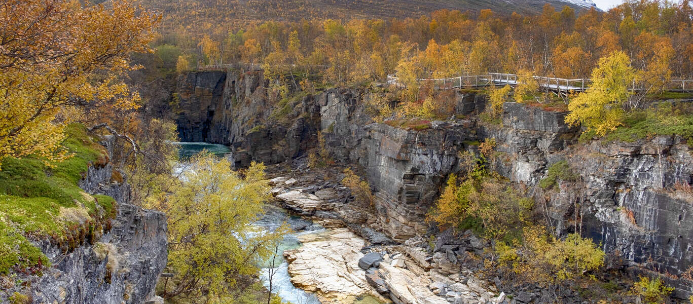 Le parc national d’Abisko offre une immersion totale dans la nature arctique. Des sentiers de randonnée bien balisés permettent de parcourir des paysages grandioses : forêts de bouleaux, gorges spectaculaires, montagnes enneigées et lacs gelés. En été, la lumière du soleil de minuit transforme les nuits en journées sans fin.