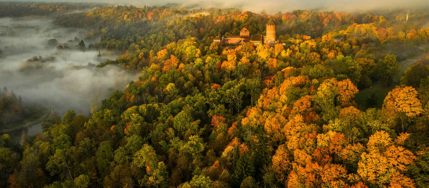 Baigné par une lumière changeante qui sublime les reliefs au fil des saisons, le parc offre une diversité de panoramas remarquables. Sentiers forestiers, belvédères naturels et méandres de la rivière invitent à la randonnée et à la contemplation, tandis que châteaux médiévaux, manoirs et grottes naturelles ponctuent le parcours. Facilement accessible depuis Riga, le parc étonne par sa richesse naturelle et culturelle concentrée dans un espace harmonieux et préservé.