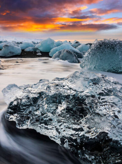 La Plage de Diamant Islande est un haut lieu de la photographie. Le contraste permanent entre glace translucide, sable noir volcanique et lumière changeante offre des scènes uniques à chaque instant. En été comme en hiver, au lever du jour comme à la tombée de la nuit, les paysages ne cessent de se réinventer. Que vous soyez photographe amateur ou professionnel, vous trouverez ici un terrain d’inspiration inépuisable.