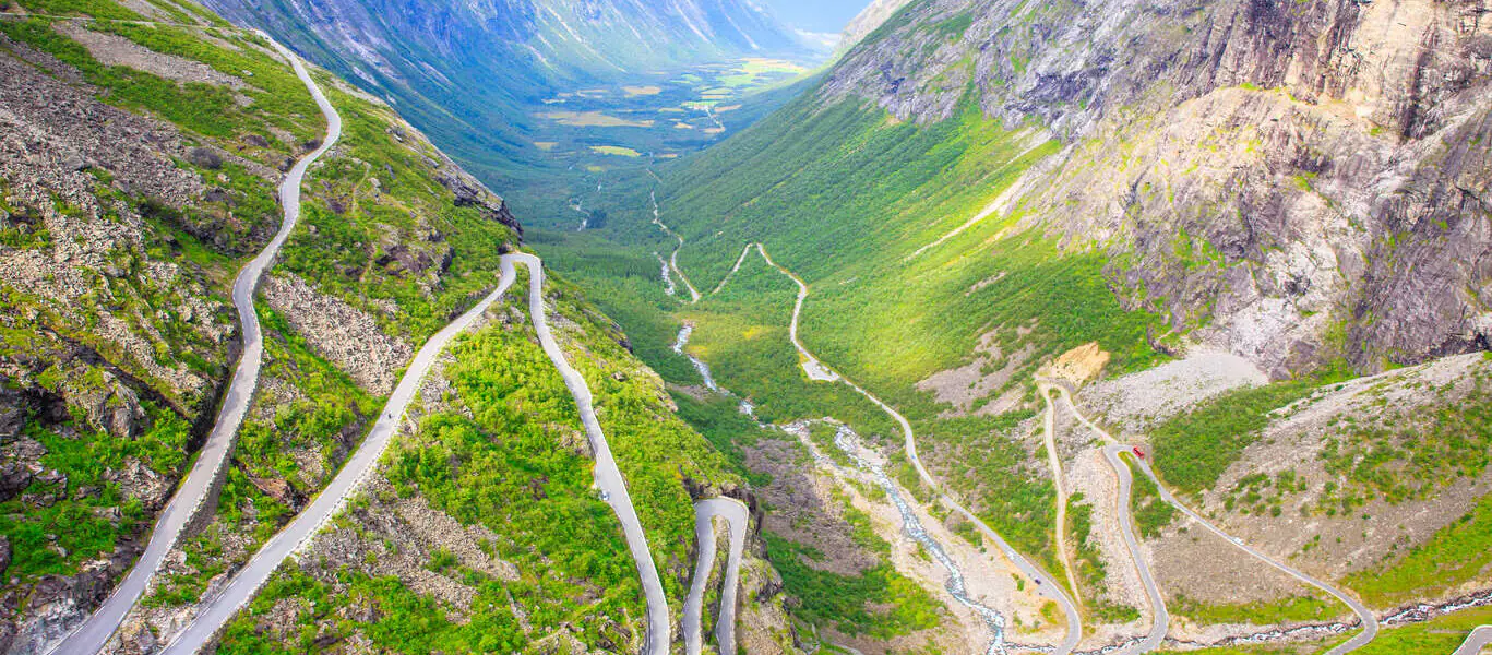 Au Nord de la région des fjords de Norvège, entre les villes touristiques d’Alesund, Kristiansund et Geiranger, se cache une célèbre route avec un nom très étrange. Et quelle route ! La route de montagne Trollstigen, aussi appelée « Route des trolls », sillonne une pente raide et comporte 11 virages en épingle à cheveux, lui donnant ainsi une allure surréelle vue du haut et en faisant l’une des routes les plus atypiques du monde.