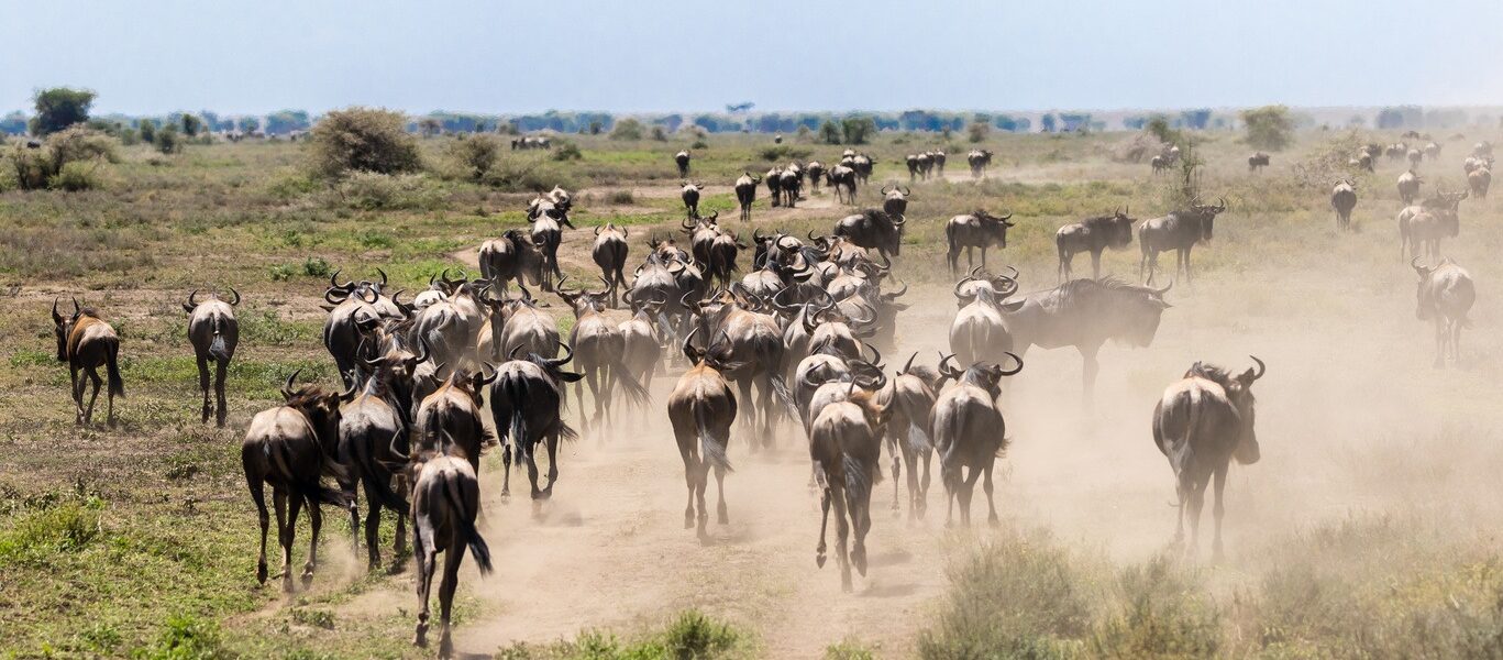 La migration des gnous reste un moment mémorable. Les gnous, zèbres et gazelles se regroupent dans le Parc du Serengeti, de décembre à mars, avant d’effectuer une grande migration vers le Nord, qui forme une boucle chaque année. A partir du mois de mars, après la mise bas des petits et avec l’arrivée de la saison des pluies, les animaux commencent à migrer du cratère du Ngorongoro et du Sud du Serengeti vers le Nord. Ils se dirigent vers la rivière Grumeti, où les attendent les crocodiles et toutes sortes de prédateurs autour de mai et juin. Après cette terrible épreuve, les gnous et autres mammifères herbivores arrivent dans la Réserve du Masai-Mara au Kenya entre juillet et septembre, où ils restent jusqu’en octobre. Ils reprennent ensuite, à partir de novembre, leur migration en direction du Sud du Serengeti.