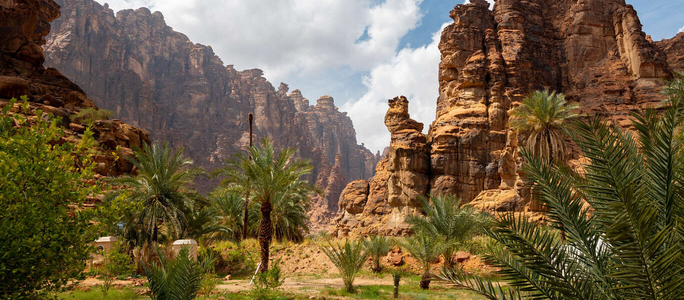 Le voyage à Wadi Disah vous plonge dans un univers spectaculaire, entre canyons majestueux et oasis verdoyantes. Située dans la province de Tabuk, cette vallée impressionne par ses falaises rouges abruptes, ses formations rocheuses sculptées par le temps et ses palmeraies luxuriantes traversées par des cours d’eau. Véritable contraste au cœur du désert, Wadi Disah offre un décor à la fois sauvage et apaisant.