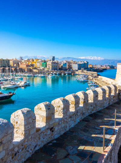Lors de votre voyage en Crète, Heraklion est une étape incontournable de votre itinéraire. La capitale crétoise regorge de monuments historiques témoins du passé glorieux de l’île durant l’Antiquité. En tête des édifices à visiter : le Palais de Knossos mais aussi la forteresse et les fortifications d’Héraklion. Appréciez également Héraklion en flânant dans les rue de son centre-ville et dans les allées de ses marchés typiques, ou encore en vous prélassant sur la plage d’Ammourada Beach, à quelques kilomètres de la ville.