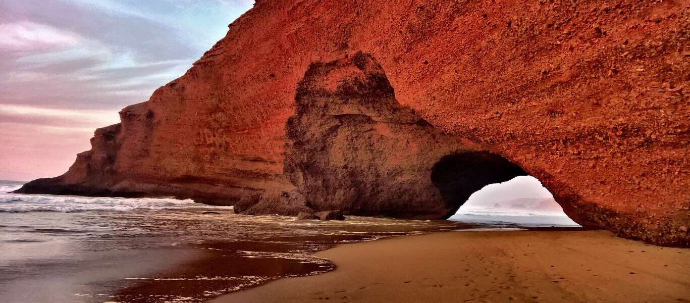 Au Maroc, la plage de Legzira, avec ses arches naturelles spectaculaires, est un incontournable. Les amateurs de surf trouvent à Mirleft des vagues parfaites pour s’initier ou se perfectionner.