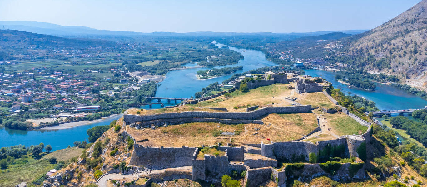 Dominée par la forteresse de Rozafa, Shkodër offre un panorama exceptionnel sur la vallée de la Buna et les reliefs environnants. L’ancienne citadelle, chargée de légendes, symbolise à elle seule l’histoire mouvementée de la région. Le centre-ville, avec ses façades pastel, ses ruelles pavées et ses cafés à l’italienne, invite à la flânerie. On y découvre la cathédrale catholique, la mosquée Ebu Beker, ainsi que des musées retraçant l’identité multiculturelle de la ville.