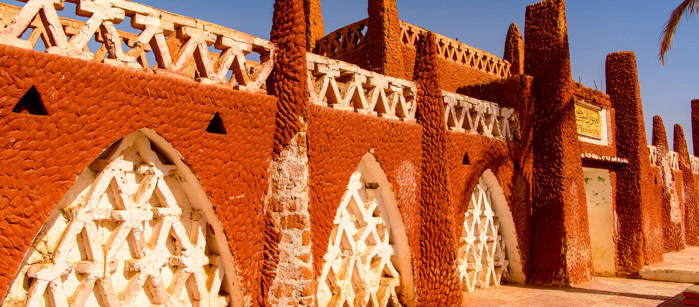 Construite autour de son ksar et de ses jardins irrigués, Timimoun révèle un patrimoine architectural singulier, façonné par la terre et la lumière. Les façades rouges, les ruelles ombragées et les maisons en banco dialoguent avec le sable environnant, créant une harmonie visuelle saisissante. Les systèmes d’irrigation traditionnels, les foggaras, témoignent d’un savoir-faire ancestral qui permet à la vie de s’épanouir au cœur de l’aridité.
