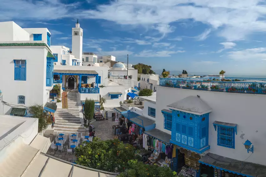 L’après-midi est dédié à la visite du Musée National du Bardo, réputé pour sa collection exceptionnelle de mosaïques romaines, témoignages artistiques uniques du bassin méditerranéen. Puis continuation vers le village pittoresque de Sidi Bou Saïd, célèbre pour ses maisons blanches aux volets bleus et ses panoramas sur le golfe de Tunis. Vous visitez le Palais du Baron d’Erlanger, chef-d’œuvre arabo-andalou, avant de flâner dans les ruelles du village et de profiter de l’ambiance méditerranéenne typique. Retour et nuit à Tunis.