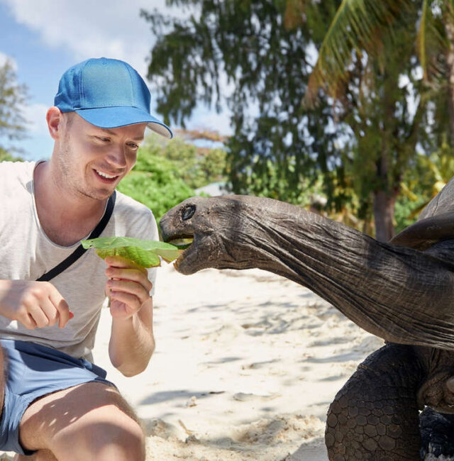 Sur terre, les voyageurs partent à vélo pour découvrir l’île d’Alphonse et sa ferme, ou rejoignent l’équipe de l’Island Conservation Society pour nourrir les bébés tortues et participer à la patrouille, contribuant ainsi à la préservation des espèces locales. La nature se dévoile également lors d’une randonnée guidée sur l’île de Saint-François ou d’une expédition sur les vastes étendues des Flats d’Alphonse.
