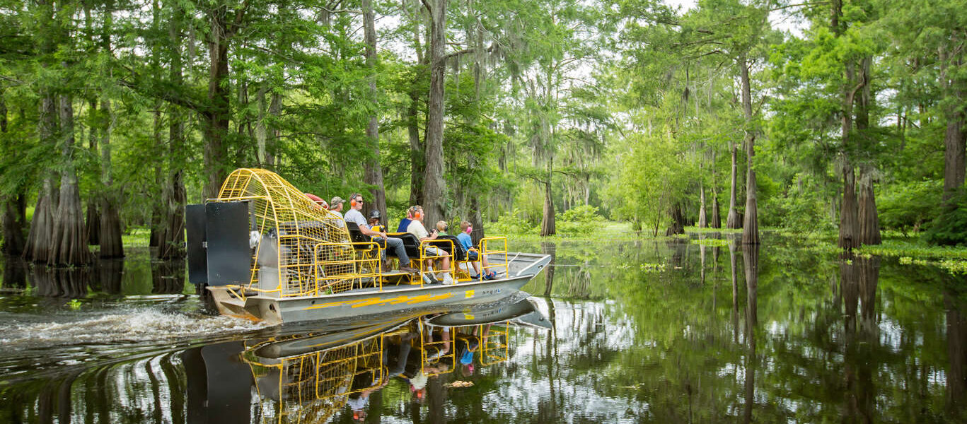 Départ vers la région de Thibodaux. Promenade en bateau à fond plat dans les bayous avec un chasseur d’alligators à travers les cyprès et les chênes où les alligators côtoient les serpents, et les hérons, les ibis. Agréable balade à la découverte de la flore et faune de la région.