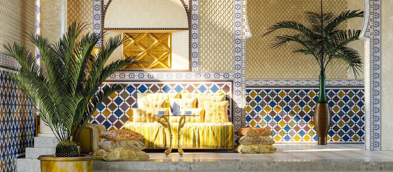 Ce palais discret conjugue avec grâce l’élégance orientale et le meilleur de l’artisanat marocain : étoffes soyeuses, boiseries ciselées, coussins brodés de fil d’or. À l’ombre des patios verdoyants et des jardins parfumés, les bassins miroitent, les fontaines murmurent, et le temps semble suspendu. Installez-vous dans votre suite, et laissez-vous bercer par l’atmosphère apaisante des lieux. Trois piscines — dont une sur le toit avec vue sur la Koutoubia et l’Atlas —, un restaurant mêlant cuisines marocaine, méditerranéenne et française, un spa signé Nuxe : tout ici invite à la contemplation, à la douceur, et à l’art de vivre.