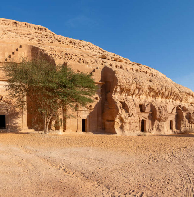 Le matin, vous partez en Land Rover vintage pour visiter Hégra avec guide, premier site saoudien inscrit au patrimoine mondial de l’UNESCO. Héritage des Nabatéens, Hégra abrite plus d’une centaine de tombeaux creusés dans les falaises de grès, témoins d’une civilisation florissante à l’époque de Pétra. Vous y découvrez l’organisation sociale et commerciale de ce peuple caravaniers qui reliait l’Arabie au bassin méditerranéen.