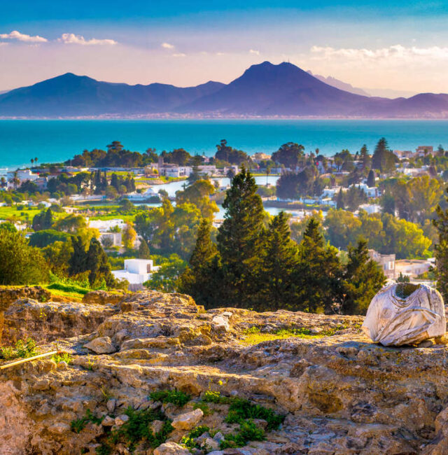 À Carthage, explorez les thermes d’Antonin, les ports puniques et les ruines romaines tout en profitant de panoramas spectaculaires sur la Méditerranée.