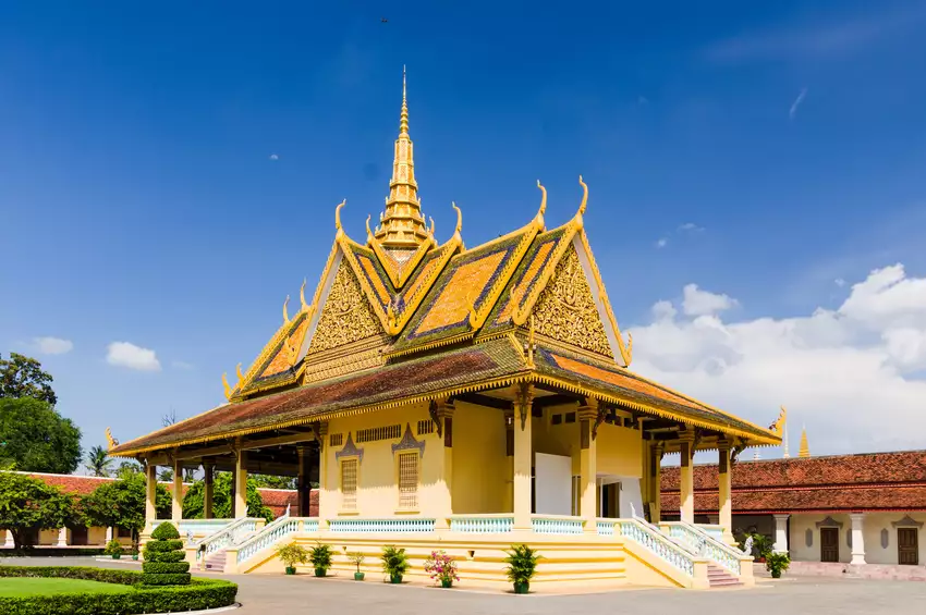 Petit-déjeuner à l’hôtel. Ce matin, découverte du Palais Royal de Phnom Penh, résidence de la famille royale et symbole du royaume. La visite débute dans les magnifiques jardins du palais, ornés de nombreuses espèces de plantes tropicales. Elle se poursuit ensuite dans la Salle du Trône, lieu des réceptions officielles et du couronnement des rois. La visite inclut également le pavillon Napoléon III, un cadeau de l’empereur des Français à la famille royale du Cambodge au XIXème siècle.