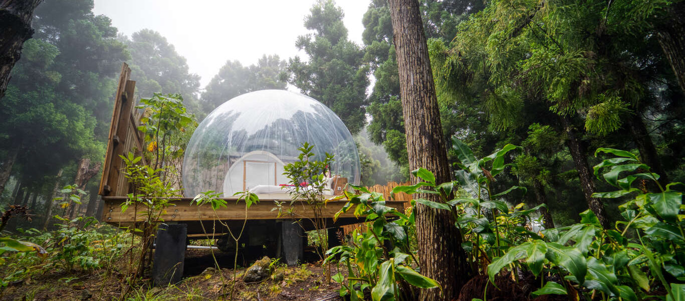Installation dans votre hébergement insolite située aux Makes, chambre double en bulle. Vue directe sur le ciel étoilé depuis votre chambre !!