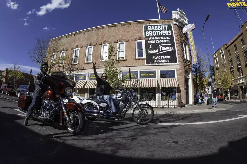 Passée la frontière de l’Arizona, le décor devient encore plus spectaculaire : vastes plateaux, ciel immense et couleurs changeantes. À Holbrook, les voyageurs découvrent les célèbres motel Wigwam aux chambres en forme de tipis, symbole mythique de la route. Tout près, le Petrified Forest National Park et la Painted Desert offrent un spectacle inoubliable de rochers pétrifiés multicolores et de paysages lunaires baignés de lumière. Enfin, la route grimpe lentement vers les forêts de pins du nord de l’Arizona, avant d’atteindre Flagstaff, perchée à 2 100 mètres d’altitude.
