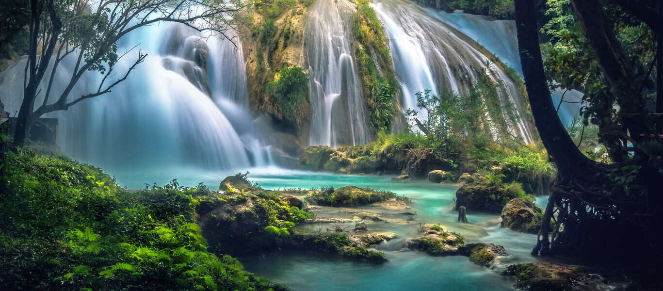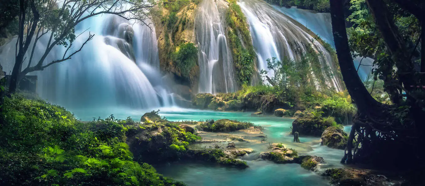 Suggestion : route pour Ocosingo puis un petit crochet vers Tonina, pour admirer ce site peu visité et qui fut restauré par la mission archéologique française. Arrêt aux cascades d’Agua Azul, l’une des beautés naturelles du Mexique. Baignade dans des bassins de couleur bleu turquoise, due à la roche qui tapisse le fond de l’eau. Déjeuner libre. (Possibilité de déjeuner à côté des cascades). Continuation vers Palenque. Installation à l’hôtel.