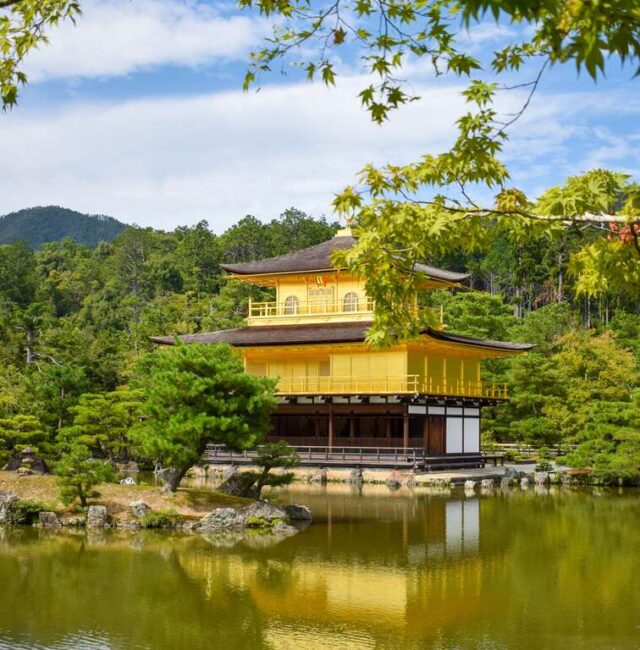 Poursuivez votre chemin jusqu’au Pavillon D’or, le Kinkakuji. Construit à l’origine comme une maison de repos pour le Shogun, il est devenu, après sa mort et à sa demande, un temple bouddhiste. Il est aujourd’hui l’un des temples les plus visités de Kyoto.