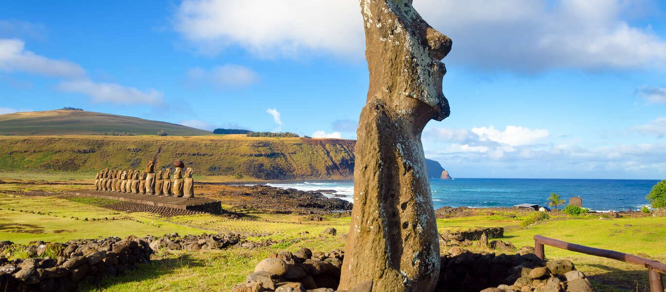 L’île de Pâques est une île isolée de 162 km², située dans le sud-est de l’océan Pacifique. Elle est particulièrement connue pour ses statues monumentales, les Moaïs, et sa seule écriture océanienne, le rongorongo. Elle se trouve à 3700 km des côtes chiliennes et à 4000 km de Tahiti. Son chef-lieu, Hanga Roa, compte près de 4000 habitants. Depuis 1995, le patrimoine exceptionnel de l’île est protégé et inscrit au Patrimoine mondial de l’humanité par l’UNESCO.