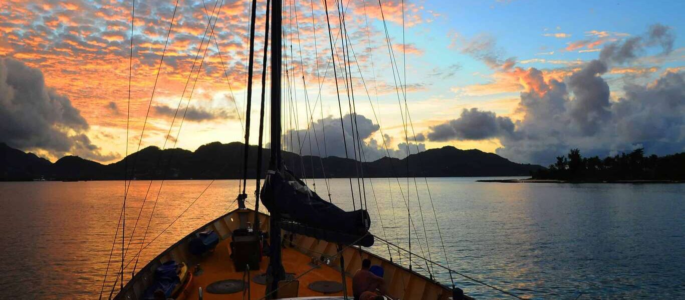 Visite de la réserve marine de Sainte Anne où vous pourrez admirer les superbes fonds marins lors d’une plongée en snorkeling. Après le déjeuner, départ pour Cocos Island, constituée de gros rochers aux étranges bandes régulières sculptées par la mer. Snorkeling inoubliable avec une abondance de poissons et de coraux aux couleurs vives. Mouillage face au pittoresque port de La Digue pour la nuit.