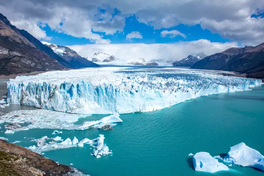 Aujourd’hui, préparez-vous à être émerveillé : le glacier Perito Moreno vous attend. Situé dans le parc national Los Glaciares et classé au patrimoine naturel mondial de l’UNESCO, ce glacier est l’un des plus impressionnants et accessibles au monde, offrant un spectacle unique avec son immense mur de glace et ses teintes allant du blanc au bleu profond.