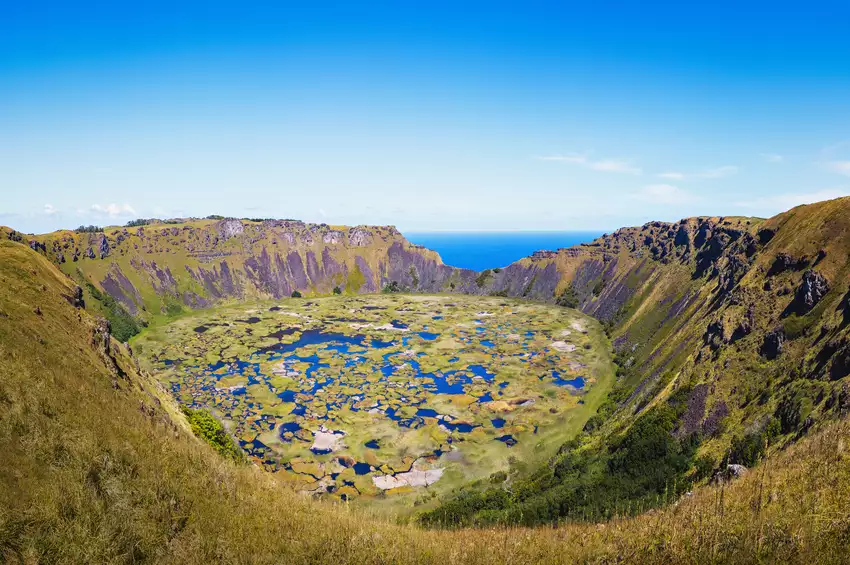Entourée du bleu intense de la mer et sous le regard vigilant de ses énormes moai, l’île de Pâques est un endroit dont les mystères cherchent à être dévoilés par des explorateurs de tous les temps, et où nos voyageurs vont découvrir tous les recoins. Avec plus de 30 explorations, qui peuvent être réalisées à pied ou à vélo et des excursions de plongée au masque et tuba, nous offrons un savoir-faire en matière d’exploration profonde comprenant des lieux que même certains îliens n’ont jamais visité et l’histoire de la culture Rapa Nui devient palpable à travers ses paysages et ses vestiges archéologiques.