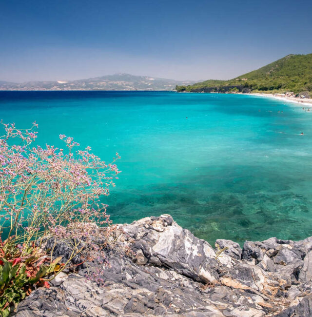 Ce matin, partez tôt avec les enfants vers l’extrême Est de la Crète. Rejoignez d’abord Itanos, petite baie discrète aux criques de sable clair : invitez les plus grands à grimper jusqu’aux ruines minoennes qui dominent la mer tandis que les plus petits jouent au bord de l’eau.