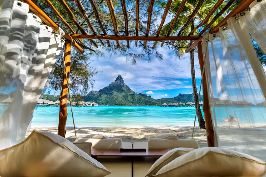 Aujourd’hui, vous rejoindrez Bora Bora, sans doute l’île la plus célèbre de Polynésie française. À votre arrivée, transfert vers votre hôtel, le Bora Bora Pearl Beach Resort & Spa, situé sur un motu face au majestueux mont Otemanu.