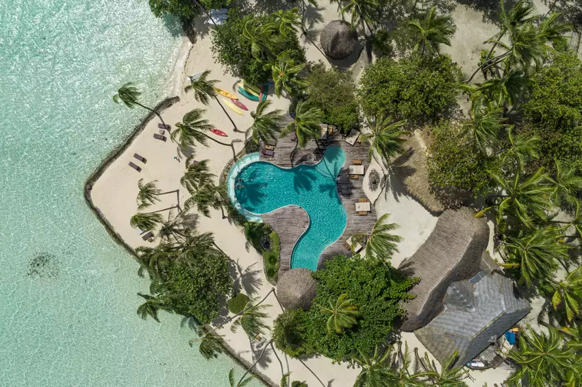 Vous rejoindrez le Taha’a Pearl Beach Resort & Spa, un élégant hôtel posé sur un motu face à l’île principale. Entouré d’un jardin tropical luxuriant et bordé par un lagon d’un bleu intense, ce lieu offre un cadre intime et préservé, idéal pour profiter pleinement de la douceur polynésienne.