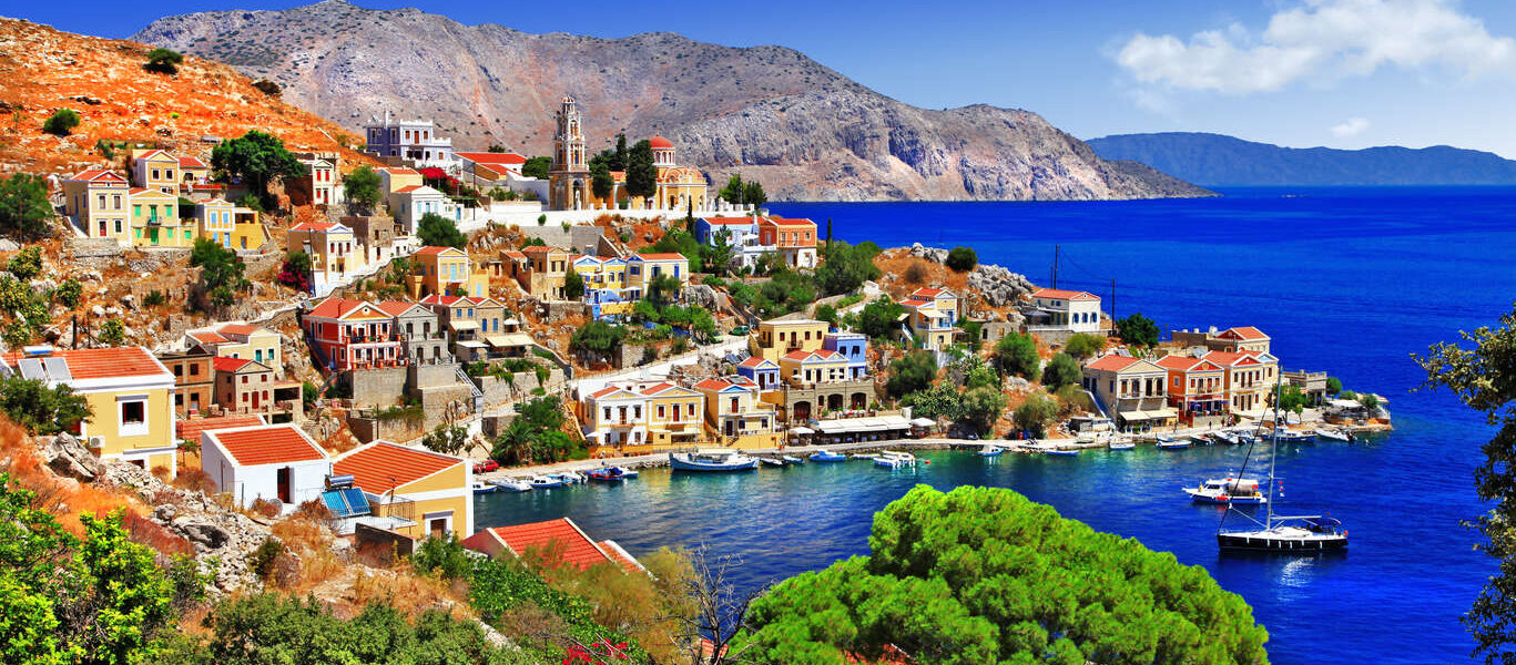 Transfert vers le port et traversée en ferry vers Symi. À l’approche de l’île, les maisons pastel s’élèvent en amphithéâtre autour du port : un décor parmi les plus photogéniques de Grèce.
