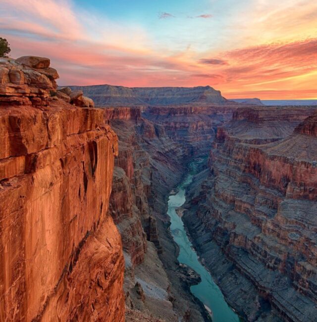 Départ en direction du Grand Canyon. Véritable phénomène géologique, le Grand Canyon est composé d’une multitude de strates, de roches sédimentaires et de roches volcaniques de couleurs chatoyantes dont la palette évolue selon la position du soleil. C’est d’ailleurs au lever et au coucher de l’astre qu’il faut être à pied d’œuvre pour admirer des nuances sensationnelles et des contrastes saisissants, d’une beauté à couper le souffle. Mais il n’est pas rare que les visiteurs reviennent à plusieurs moments de la journée pour se repaître encore du spectacle.