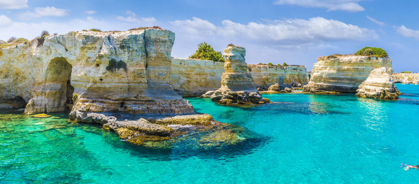 Route pour la belle cité de Gallipoli sur la côte ionienne, l’un des joyeux de la péninsule salentine. Blottie sur une île, la vieille ville aux maisons éclatantes de blancheur est dotée d’un joli port de pêche. Passé le pont, d’élégants palais du 18e siècle côtoient de simples maisons de pêcheurs et d’innombrables petites églises. Avec ses plages de sable fin et sa mer cristalline, Gallipoli est aussi la destination chic version Riviera. Nous vous conseillons une croisière en voilier pour découvrir les plus belles grottes marines du parc de l’île de Sant’Andrea inaccessibles, avec un déjeuner à bord. Installation à votre hôtel de charme avec vue mer.