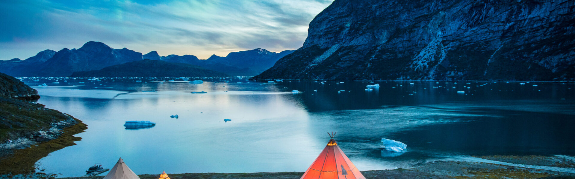 Viviez une expérience mémorable en immersion dans un camp d’aventure avec guide et chef cuisinier rien que pour vous situé en pleine nature au cœur du Groenland.