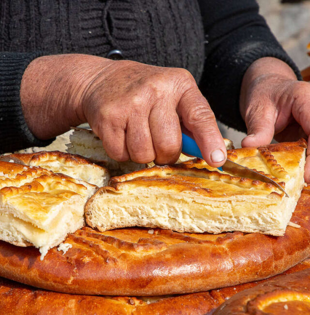 Petit-déjeuner. Vous reprenez la découverte des trésors architecturaux de Samarcande. Vous visitez la mosquée Bibi Khanoum et le marché Siyob animé par la vie locale. Vous traversez les étals des fruits secs, des légumes et de pain. Le pain de Samarcande se fabrique toujours à la manière artisanale selon les recettes qui passent d’une génération aux autres. Il est très célèbre dans le pays et est devenu une marque de Samarcande. Vers midi, vous allez chez une famille boulangère pour découvrir la procédure de la fabrication du pain. Vous assistez en même temps à la préparation du plat traditionnel ouzbek « Palov ». Déjeuner typique au Palov chez l’habitant.