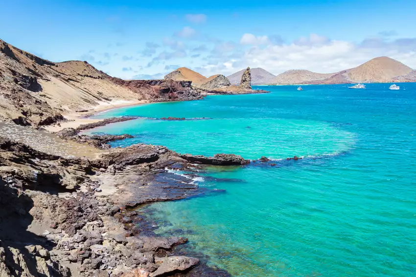 L’île de Bartolomé est la plus célèbre de l’archipel grâce à la vue imprenable offerte depuis son sommet sur le Pinnacle Rock et l’île de Santiago. Vous pourrez atteindre ce superbe point de vue en gravissant sa promenade en bois. Elle est composée d’un volcan éteint avec une variété de formations rouges, oranges, noires et même vertes. Vous emprunterez un chemin d’escalier jusqu’au sommet du volcan (entre 30 et 40 minutes), où vous profiterez d’une des meilleures vues sur les îles. Vous visiterez également une petite mais belle plage, entourée par la végétation unique de cet îlot. C’est le lieu idéal pour la plongée en apnée et pour regarder les pingouins des Galapagos, mais aussi des requins à pointes blanches et des otaries joueuses.
