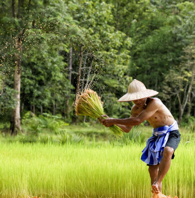 Petit-déjeuner à l’hôtel. Journée de découverte des alentours de Koh Trong. Située au milieu du Mékong, l’île de Koh Trong est entourée de plages de sable fin. Vous profiterez d’une atmosphère détendue, rencontrerez des paysans souriants, des pêcheurs au teint buriné, visiterez des vergers luxuriants – un vrai paradis. Possibilité de faire une balade en charrette tractée par des bœufs, si le cœur vous en dit. Vous ne manquerez pas non plus l’occasion de participer au projet de reforestation. Repas libres. Nuit à Koh Trong.